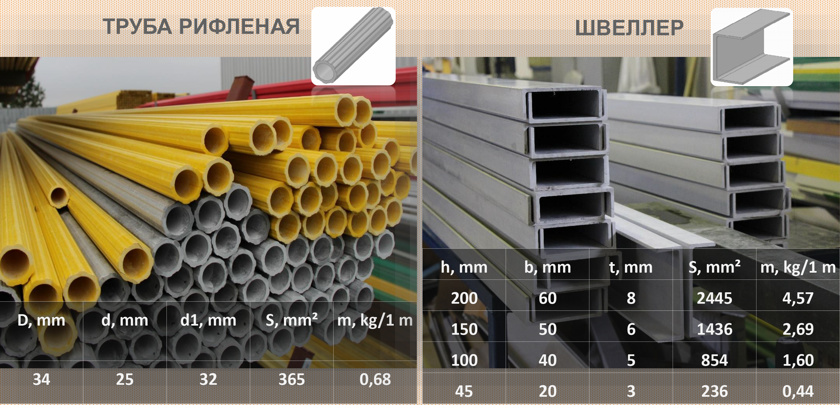 Профили стеклопластиковые имеют следующие технические характеристики: